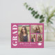 Anuncie orgulhosamente seu segundo grau ou formandos com esses cartões postais personalizados de colagem de 4 fotos em cores rosa e branca. Basta deixar suas fotos pessoais e, se necessário, usar a ferramenta design para recortá-las para o ajustado perfeito. Você pode até personalizar a cor do plano de fundo para uma de suas opções. Essas placas de na moda podem facilmente se tornar seus convites de festas de formando pessoal simplesmente mudando o texto conforme necessário. Para ver mais itens como este, visite minha loja aqui em "www.Zazzle.com/LakeViewCardCo". Obrigados