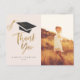 Personalize este obrigado de na moda e graduação moderna que você faz postais com seu nome e foto. Apresentando um boné de gradação com a torneira de ouro e um roteiro de pincel moderno que diz "Obrigado" em ouro. Adicione seu endereço de retorno e mensagem personalizada no verso.
