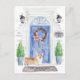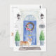 Anuncie seu novo discurso com nosso anúncio de na moda com Corgi, porta azul frontal, tapete de boas-vindas, letreiro, topiários e coroa floral em um fundo de tijolo de cinza.