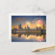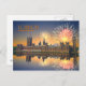 Cartão-postal de Londres com uma imagem das celebrações de fogos de artifício sobre as Casas do Parlamento refletidas no Rio Tâmisa