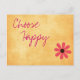Cartão-postal de mensagem positiva inspiracional com a afirmação — citação/frase, "Choose Happy" com uma flor retrorreflectora bonito rosa. Excelente maneira de inspirar alguém, enviando-lhes uma pequena mensagem de esperança e afirmação.