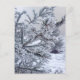 Cartão-postal de Natal, árvore de Natal sob a neve em um nevoeiro