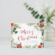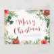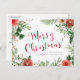 Este belo cartão-postal de férias apresenta elegante cor d'água, flores vermelhas com verde em fundo branco com Feliz Natal em texto vermelho.