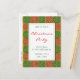 Um modelo de cartão postal de festa de Natal personalizado com um padrão de fundo de azulejos de fleur de lis de vintage de um lado e sala para as informações de festa personalizadas e o endereço de retorno no verso. Personalize-o para alterar fontes, dimensionar e muito mais, até mesmo salve o design para mais tarde.