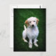 Um filhote de rabisco bonito de ouro está à atenção no gramado.