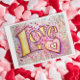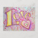 Cores d'água pintando a palavra amarela ouro "Amor" com um duplo coração. Rosa e roxo destaca as letras e o coração. Uma luz de brilho no topo dá à pintura um brilho brilhante. Personalize este cartão postal de texto Love com seu próprio texto e imagens usando o botão "Personalizar o texto". Faça suas mensagens personalizadas de nota de amor, cartões postais ou convites!