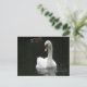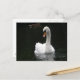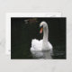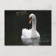 Este cartão-postal mostra uma fotografia de um lindo cisne branco com um bico laranja brilhante. O cisne é um cisne mudo (Cygnus olor) e foi fotografado no Reino Unido. Está suavemente a atravessar a água e parece muito sereno.