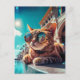 Este postal mostra um engraçado gato da Califórnia vestindo óculos escuros, resfriando sob o sol ao redor de uma piscina. Mande para um amigo para espalhar um pouco de alegria!