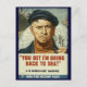 Esta é uma imagem de um poster de Propaganda da Guerra Mundial Vintage que mostra um Cão Velho do Mar Salgado carregando sua bolsa e dizendo "Você Aposto que vou voltar para o mar".