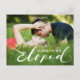 Este cartão postal de anúncio de casamento elopeado apresenta caligrafia manuscrita branca com a palavra "fugido" para uma forma chique e elegante de compartilhar as grandes notícias com sua família e amigos! Ele tem fontes serif italicerçadas para um toque tradicional, mas moderno