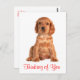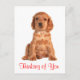 Quem pode resistir à cara doce de um cachorrinho? Este cartão-postal divertido apresenta um ouro Cocker Spaniel sentado sobre um fundo branco. Este filhote está pronto para ajudá-lo a enviar saudações de Pensar em Você para sua família e amigos. Cartões-postais doidos são um alternativo econômico para cumprimentar cartões quando você quer enviar uma nota rápida para que alguém saiba seu pensamento sobre eles.