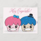 Cartaz engraçado de dois cupcakes com bigode. O cartão-postal diz "Ei Cupcake!"