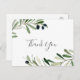 Este obrigado moderno do ramo de oliveira que você faz é perfeito para um casamento de boho. O design rústico, porém elegante, apresenta folhas botânicas de cor aquática simples e azeitonas pretas num pequeno galho com um toque mediterrânico clássico. Personalize a parte traseira do cartão postal com seus nomes, seu endereço de devolução e uma mensagem de obrigado. Como alternativa, deixe o vazio da seção modelo para enviar uma nota personalizada e ponderada em cada cartão após a sua chegada. Essas cartas podem ser usadas para um casamento, chá de panela ou qualquer evento especial.