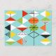 Este Cartão-postal Retro Harlequin é o estilo moderno de meio século no seu melhor. A design inspirada na vintage apresenta um fundo aqua com linhas de formas triangulares formando um padrão harlequin. As formas de diamante de dois tons são amarelas, brancas, vermelhas, laranja, pretas, verdes e brancas com sotaques pretos. Mas espere, há mais! Há também ovais de laranja, ovais verdes com estrelas pretas, e contornos de diamantes negros. O tempo continua, mas vocês vão sentir que encontraram uma explosão de cozinha do passado com este tesouro geométrico colorido.