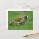 Cartão postal com fotografia de pica-pau verde na grama