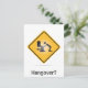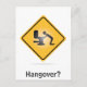 Cartaz engraçado com um aviso amarelo para uma ressaca com um ícone jogando sobre ele em um fundo branco com o texto: "Hangover".
