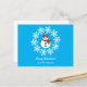 Imagem de um boneco de neve em um floco de neve e fundo azul.