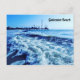 O Pier do Prazer Histórico da Ilha de Galveston pode ser visto em segundo plano, à medida que a maré entra em terra.