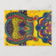 Um hipopótamo brilhante, feliz, multicolorido, contra um fundo amarelo ensolarado.
