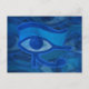 Cartão postal com o desenho abstrato azul texturizado Eye of Horus. Esta design apresenta o Olho de Cavalo em tons azuis nos Olhos de Cavalo desbotados no fundo.