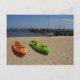 Cartão postal de um par de caiaques do mar na praia em Provincetown, Massachusetts.