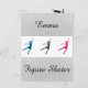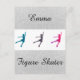 Cartão-postal personalizado com o nome da garota. Faísca de brilho de prata com 3 patinadores de figura colorida diferentes no centro na frente e uma cinza de fundo na parte de trás com uma silhueta de patinagem de figura negra no canto inferior direito.