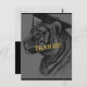 Crie uma graduação personalizada exclusiva, graças a cartões de pagamento, na conveniência de um cartão-postal. A frente do cartão postal tem, "Obrigados!" junto com um design de tigre personalizado. Adicione sua mensagem especial no verso junto com seu nome. Você também pode adicionar o nome e o endereço de correspondência do destinatário para que ele seja impresso diretamente no cartão-postal. Matizes pretos e dourados. Use a modelo para personalizar.