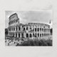 Cartão postal preto-e-branco com a imagem de Coliseu em Roma, Itália.