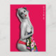 Cartão-postal com pinup trabalho de arte original ©"Miss Cherrie Au Lait - Bath". Fundo rosa quente.
