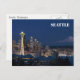 O cartão postal é mostrado com uma impressão fotográfica do horizonte noturno de Seattle. Personalize este item ou comprar como está. Imagem licenciada
