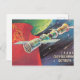 Cartaz soviético com espaçonave Glória às conquistas de outubro!