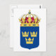 Cartão postal com o Casaco de Armas de Suecia. Escolha a cor de fundo clicando no botão Personalizar!, Editar, Fundo.