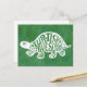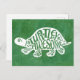 Cartão postal Turtley Incrível com design de tartaruga branca sobre fundo aquoso verde. Tem o trocadilho de tartaruga "Turtley Awese" na carapaça da tartaruga.