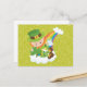 Bonito espirais brancas num fundo verde amarelo, misturam-se e combinam-se com as nossas outras Ruas, designs do Dia do Patrick para algumas combinações divertidas! Este cartão-postal bonito e colorido apresenta o fundo das espirais com um duroso duma luva num chapéu verde e meias listradas relaxando com uma cerveja numa nuvem depois de deslizar para baixo num arco-íris colorido!