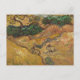 Um cartão postal de arte com a pintura de Vincent van Gogh (1853-1890), intitulado Field with Two Rabbits (1889). Coelhos pastando no campo por árvores, arbustos e um riacho.