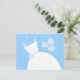 Cartão postal com tema nobre, com um design bonito em tons de azul, preto e branco, com um vestido estilizado de casamento em um cabide acompanhado por um buquê de flores. Um design personalizável para você personalizar com seu próprio texto, imagens e ideias.