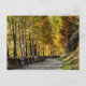 Cartão postal com uma estrada enrolada no outono, com árvores coloridas no Vale do Funes, no Tirol do Sul, Itália.