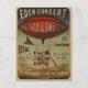 Cartaz de circo francês mostra dois artistas na cesta de um dirigível navegado por um leme e uma hélice. A cesta ostenta a data 1884.