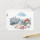 Quente e caprichoso, este cartão postal de férias captura a amizade gentil entre um urso e um coelho partilhando um momento festivo numa floresta coberta de neve