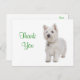 Quem consegue resistir à face de um pup de Terrier West Highland?Este cartão postal divertido apresenta um doce cão branco de Puppy Westie em pé sobre um fundo branco nítido. Este filhote está pronto para ajudá-lo a enviar saudações de agradecimento aos seus amigos e familiares. Cartões postais doidos são um alternativo econômico para um cartão de saudação quando você quer enviar uma rápida nota de Obrigados. Obrigado White West Highland Terrier - Westin - Cartão-postal de Saudação