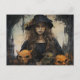 Um cartão postal com uma bruxa vintage com...companheiros estranhos.