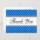 Cartões-postais de agradecimento simples com padrão de bolinhas azuis reais e brancas. Design moderno e elegante de impressão de polkadot para festa de casamento elegante. Estilo contemporâneo moderno e divertido. Cor de fundo personalizada e texto de modelo personalizado no verso. Também podem ser usados como cartões de Save the date. Altere a quantidade para obter o preço mais barato por cartão.