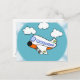 Cartão Postal Cartoon Airplane in Clouds with Sunburst