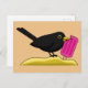 Cartão Postal Cartoon Blackbird Comendo Um Sorvete