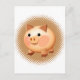 Porco bebê do estilo cartoon. Cartões postais personalizados. Fundo com efeito de gradação. Ideia de presente para crianças.