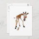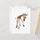 Uma girafa de desenho animado bonita olhando para um rato com um olhar curioso no seu rosto.