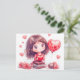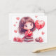 Cartão Postal Cartoon Girl Surrounded by Roses Romantic Valentin