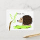 Um ouriço de desenho animado bonitinho em um pedaço verde de grama com um galho na frente dele. A palavra "obrigado" pode ser alterada como desejado.