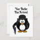 Cartão Postal Cartoon Pinguim Clássico Bonito com Guarda-chuvas