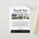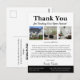 Este cartão postal exclusivo de agradecimento de casa aberta de imóveis é a maneira perfeita para os agentes imobiliários deixarem uma impressão duradoura nos compradores potenciais após uma casa aberta. Com um fundo elegante preto e branco, este cartão postal elegante e profissional é projetado com um modelo de mensagem de agradecimento personalizável, um modelo de três fotos da propriedade e um código QR, tornando-o uma ferramenta poderosa de acompanhamento. Expressar gratidão de forma atenciosa e personalizada pode ajudar a fortalecer as relações com os compradores potenciais, ao mesmo tempo em que reforça a sua marca. Seja você um agente experiente ou esteja apenas começando, este cartão postal de agradecimento é uma adição essencial à sua estratégia de marketing imobiliário.